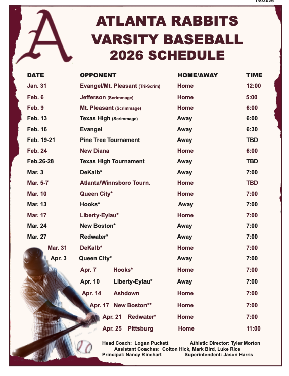 | 02/16/2026 | Regular | Texarkana Pleasant Grove Hawks | 3-0(L) | 0-1-0 |