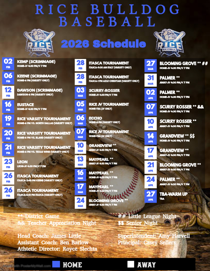| 02/16/2026 | Regular | Corsicana Tigers | 10-0(L) | 0-1-0 |