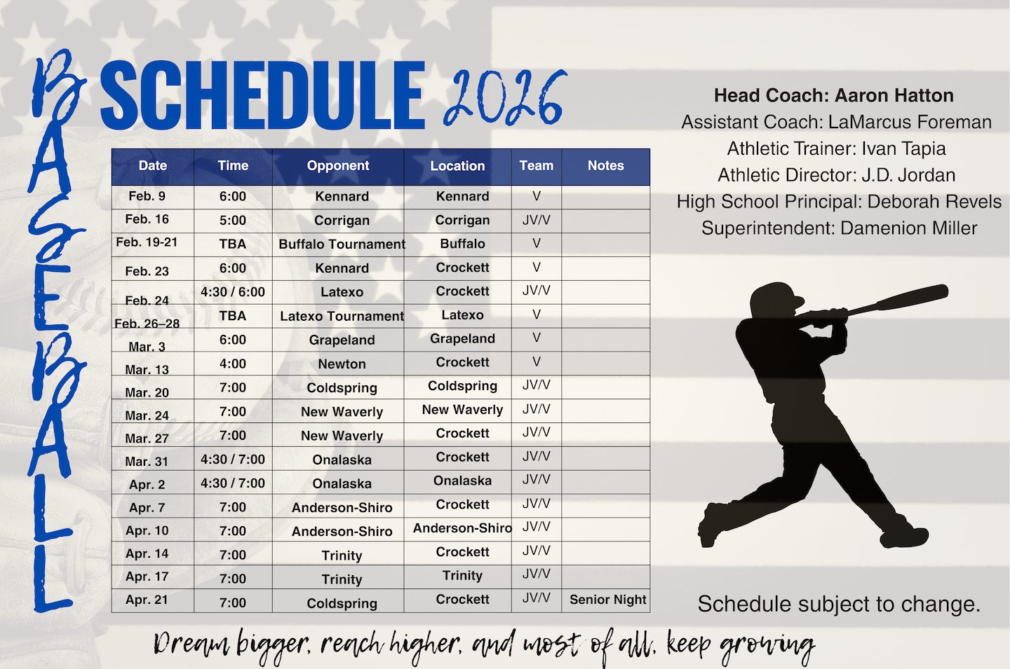 | 02/16/2026 | Regular | Navasota Rattlers | 12-1(L) | 0-1-0 |