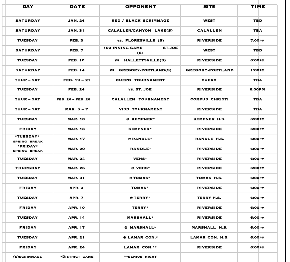 | 02/17/2026 | Regular | Robstown Cottonpickers | 8-0(W) | 1-0-0 |