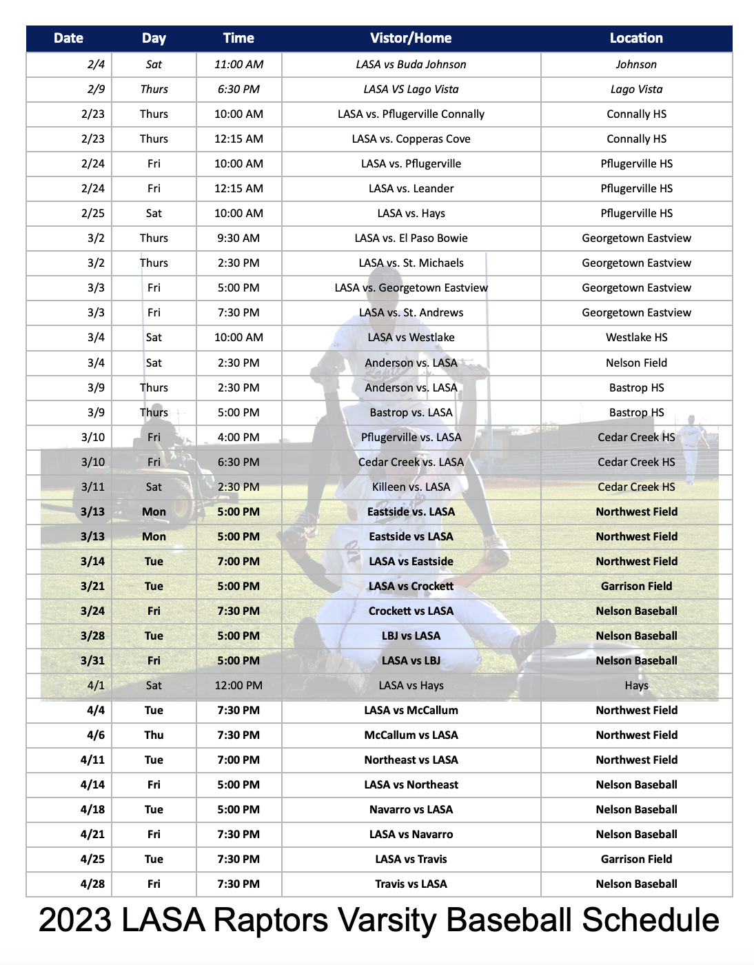 | Austin LASA | 0 | 0 | 0 | 0 | 0 | |