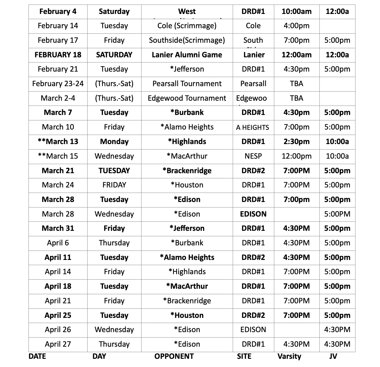 | San Antonio Lanier Voks | 0 | 0 | 0 | 0 | 0 | |