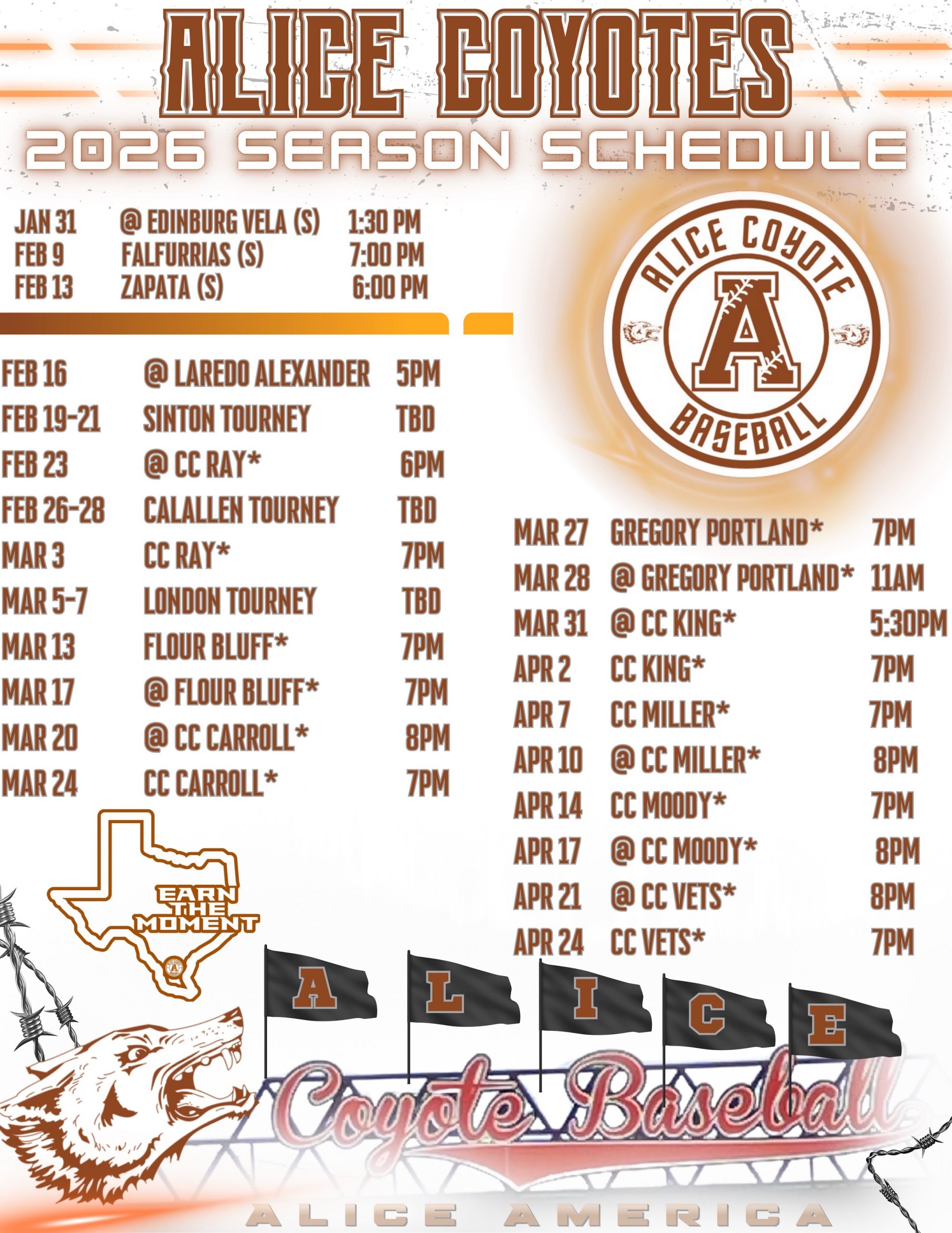 | 02/16/2026 | Regular | Laredo Alexander Bulldogs | 10-3(L) | 0-1-0 |