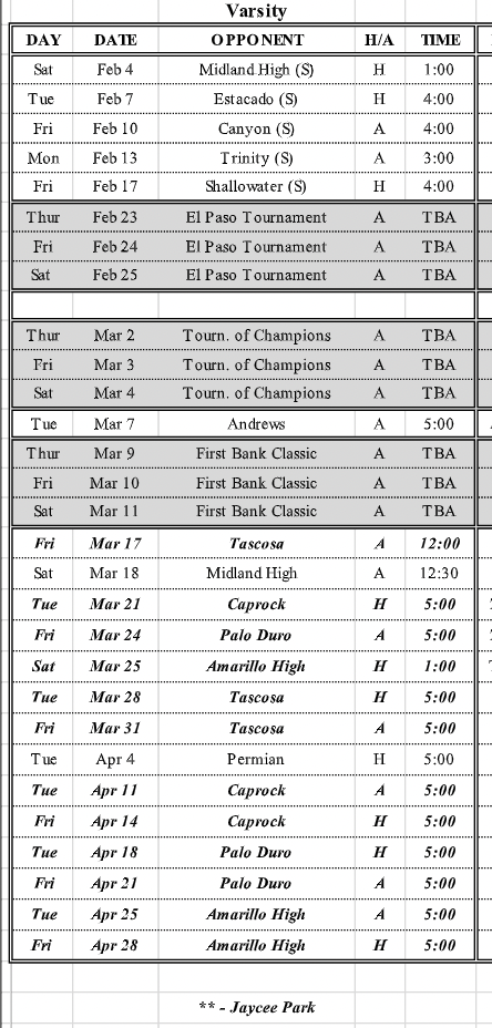 Amarillo Caprock Longhorns 0 0 0 0 0