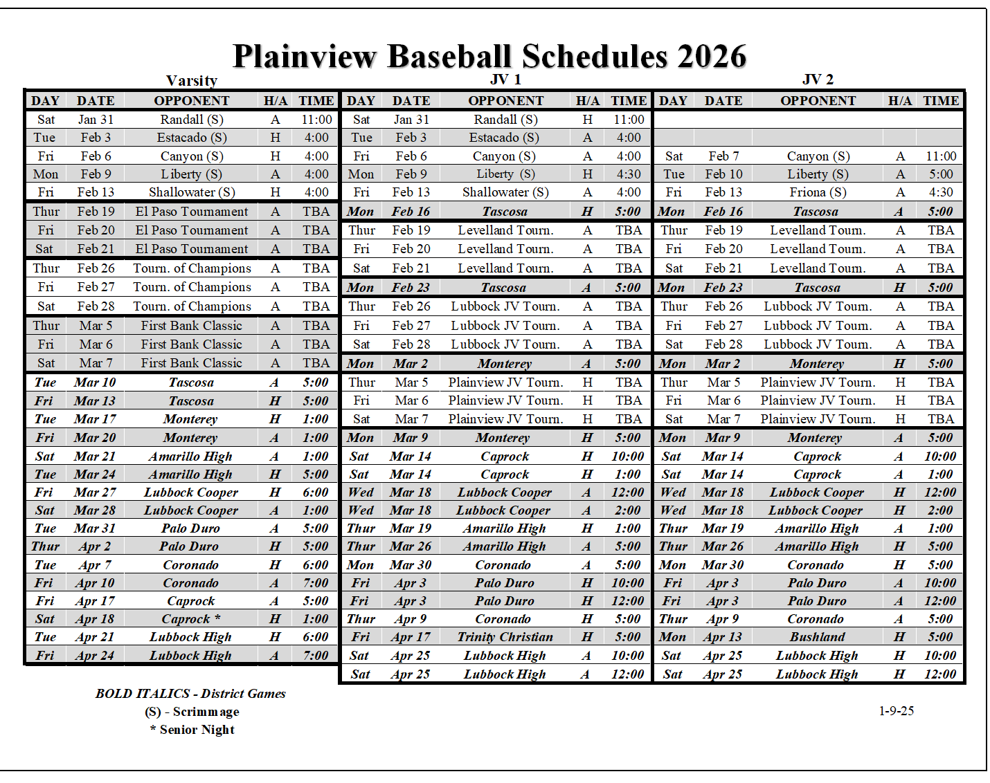 | Lubbock Monterey Plainsmen | 0 | 0 | 0 | 0 | 0 | |