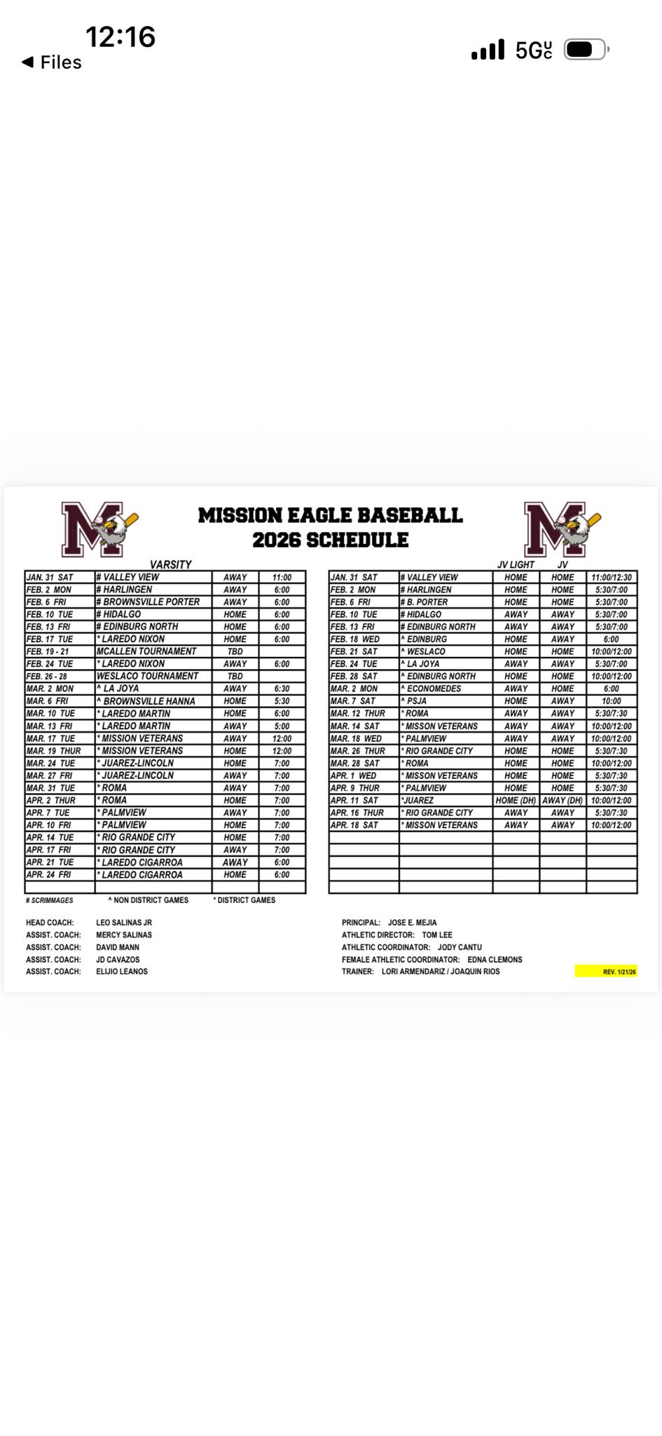 | 02/17/2026 | District | Laredo Nixon Mustangs | 4-0(W) | 1-0-0 |