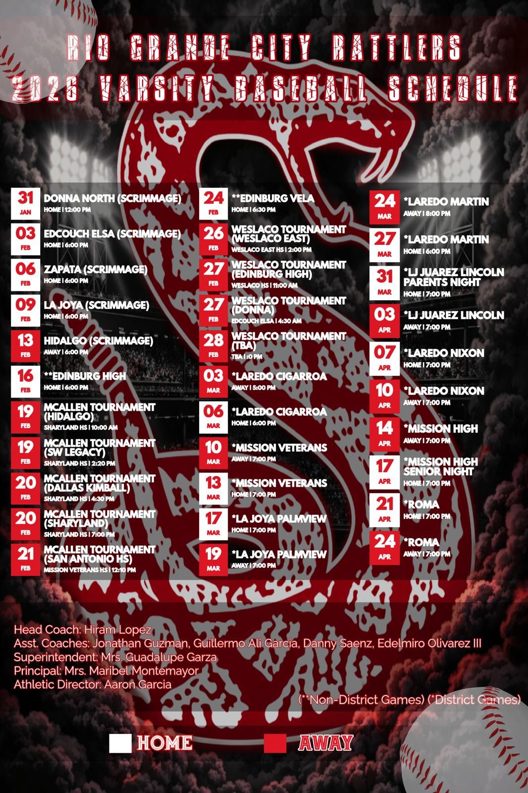 | 02/17/2026 | District | Laredo Martin Tigers | 8-0(L) | 0-1-0 |