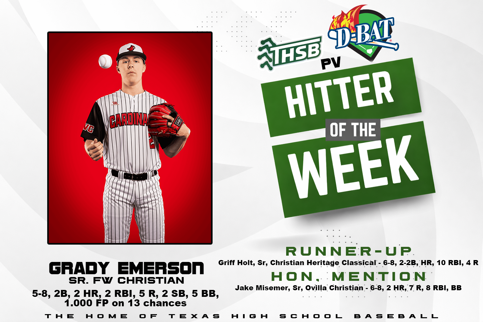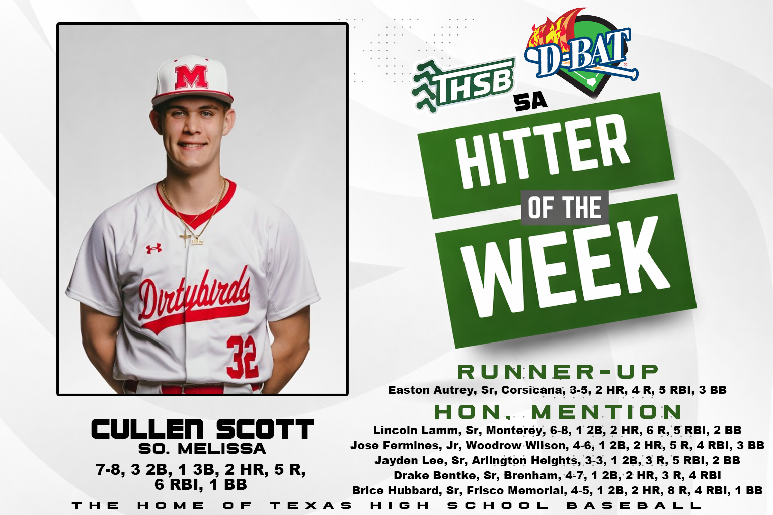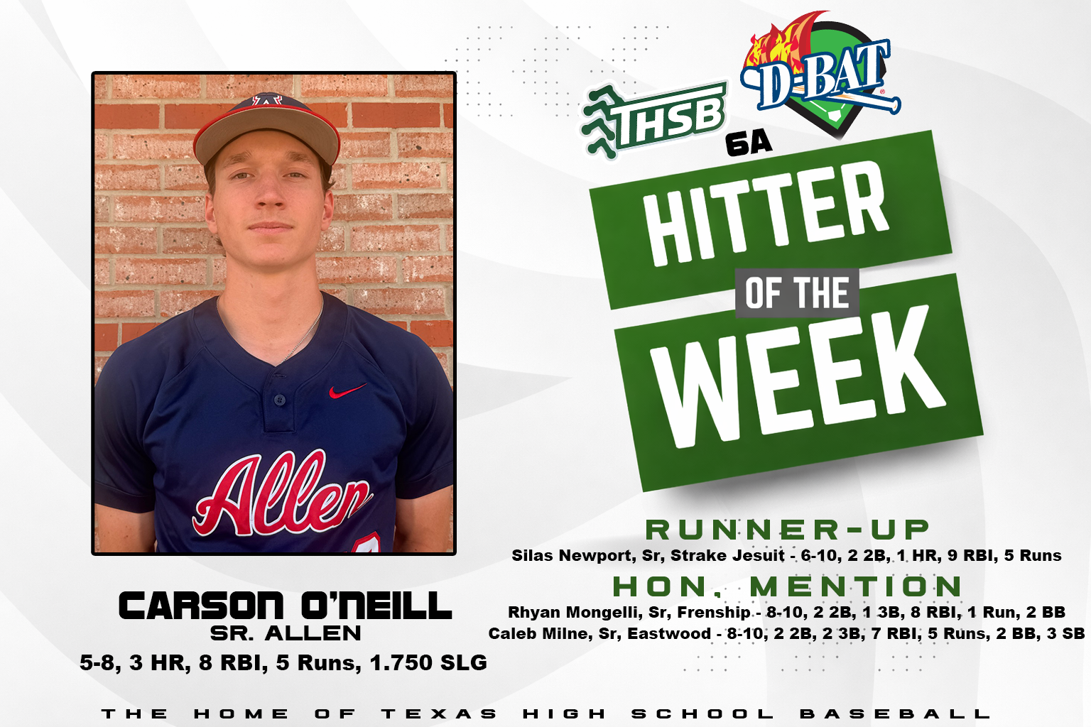 Landon Brown Iowa Colony 5A 9 Wade McConnell Bushland ISD 3A 8 Drake Bentke Brenham…