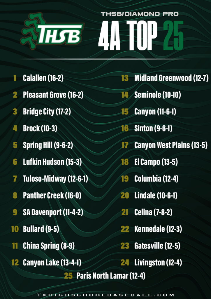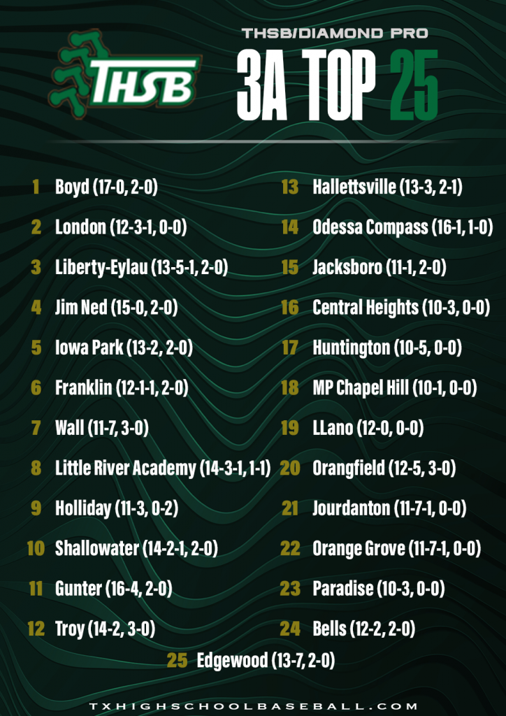 Diamond Pro/THSB Top 25 Rankings – 3/16