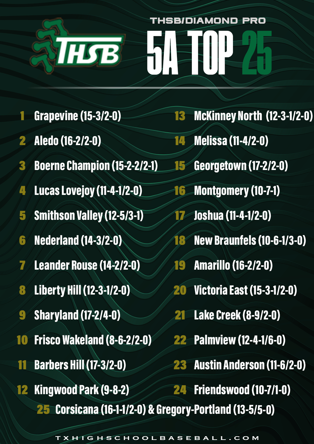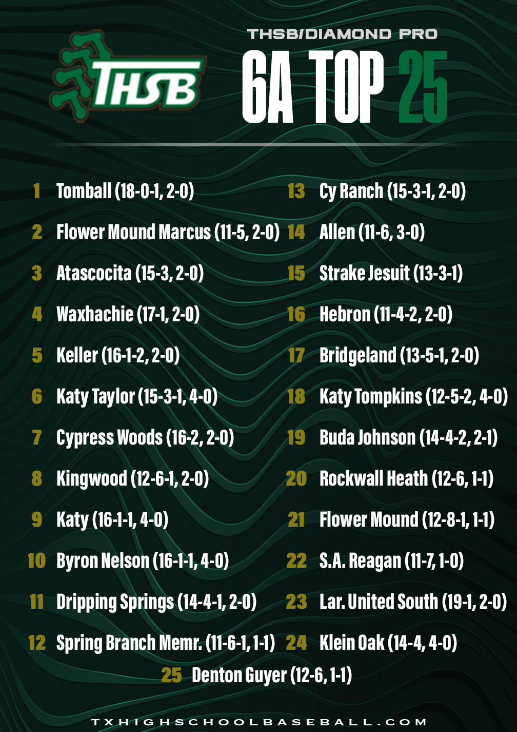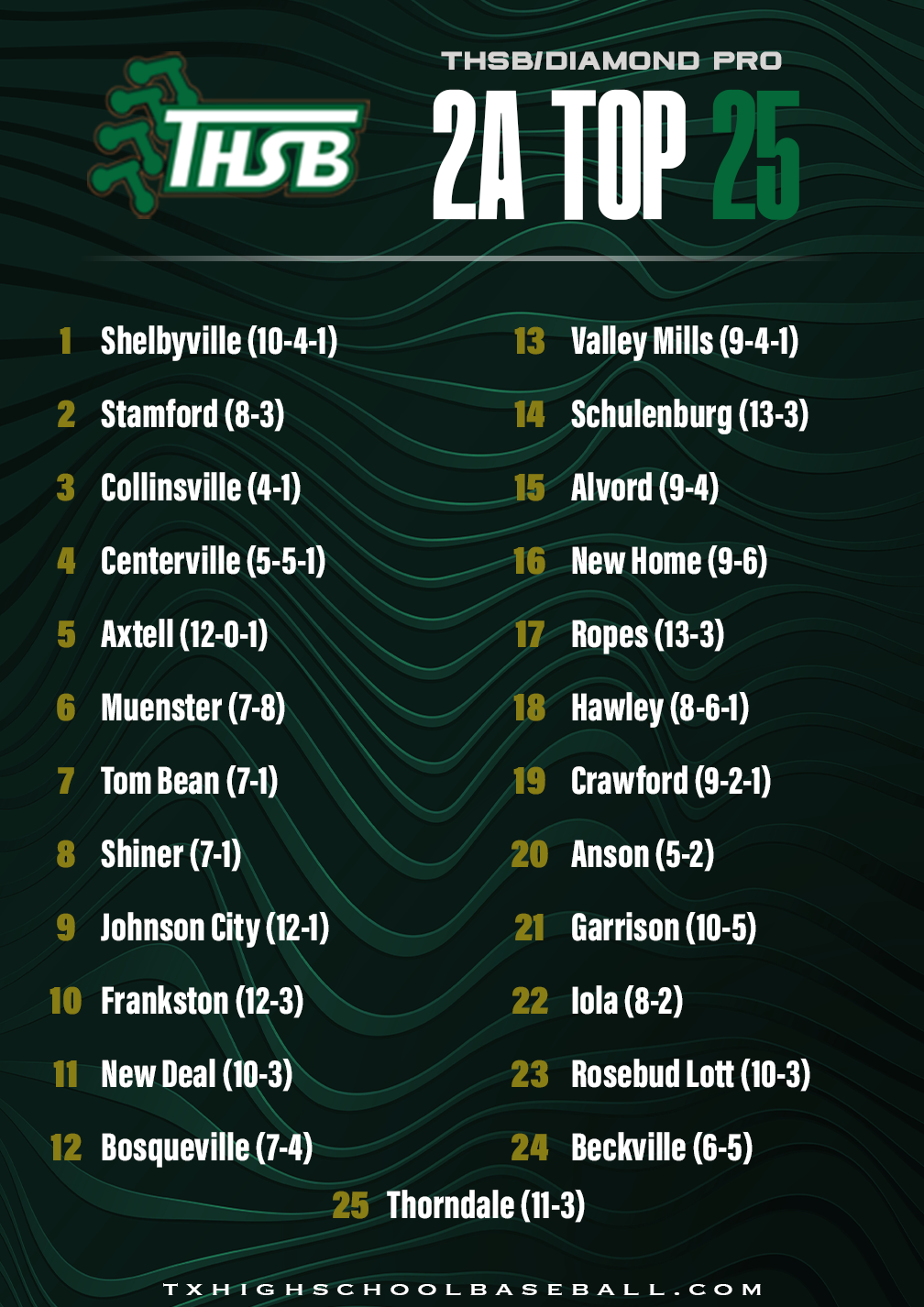 Diamond Pro/THSB Top 25 Rankings – 3/16