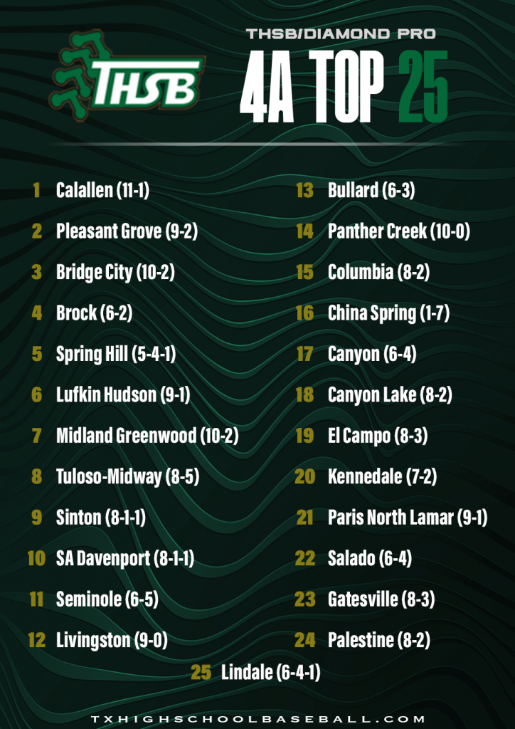 Diamond Pro/THSB Top 25 Rankings – 3/2