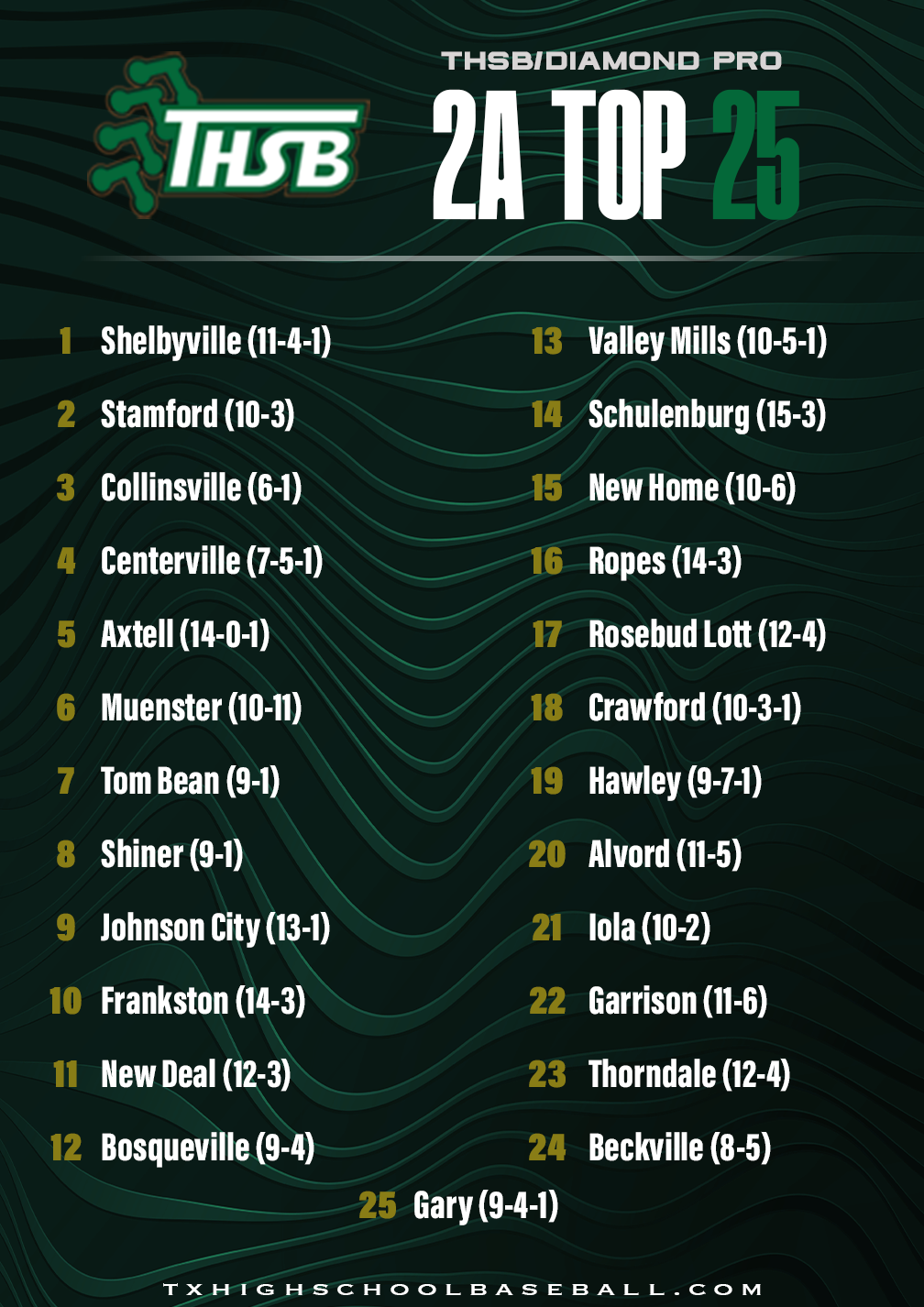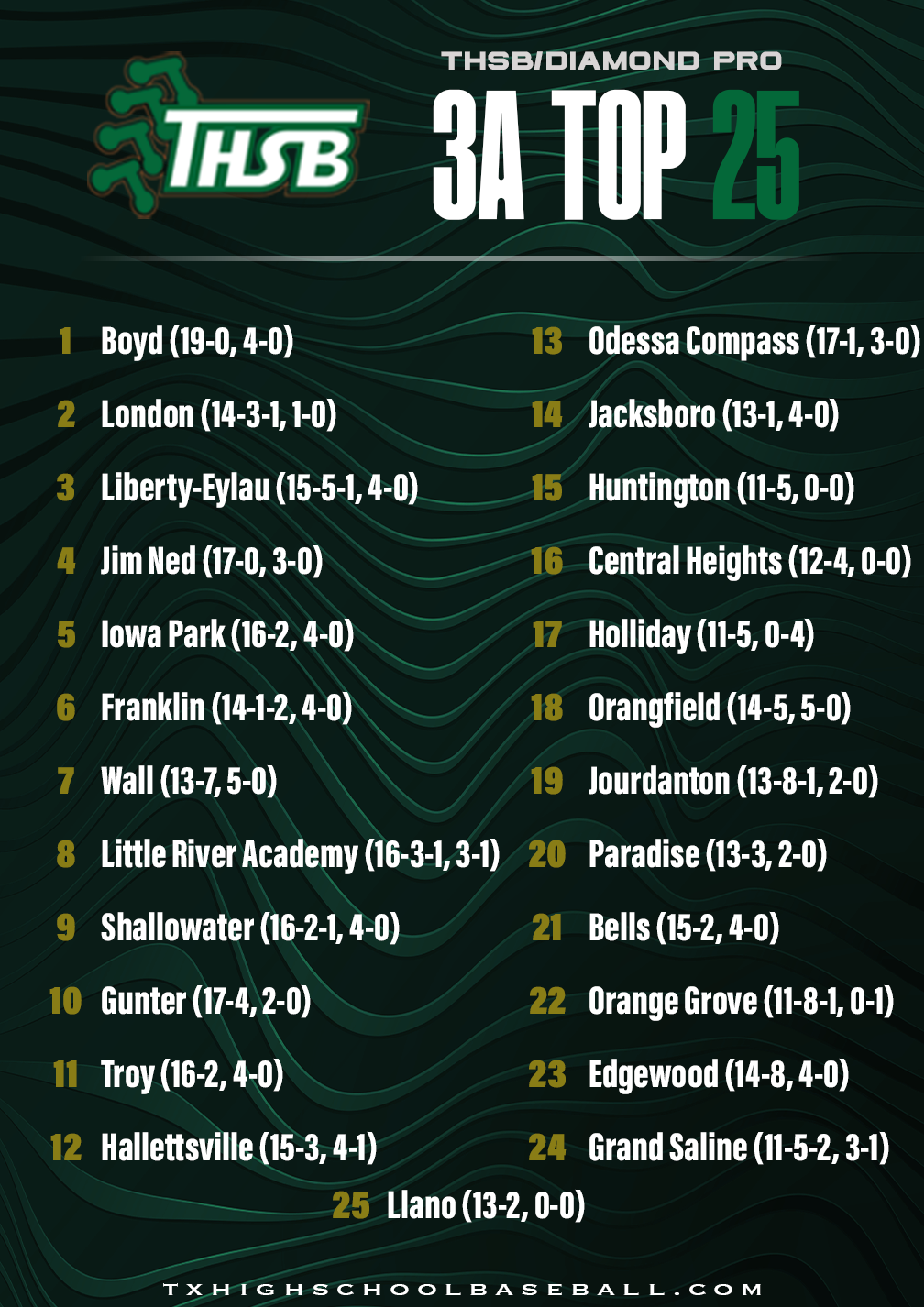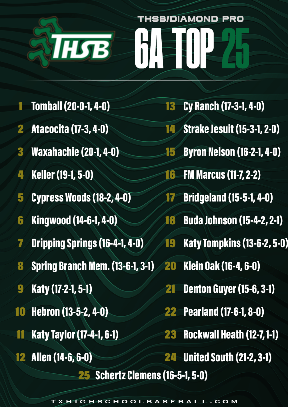 Diamond Pro/THSB Top 25 Rankings – 3/23