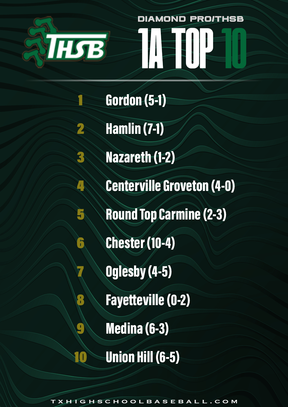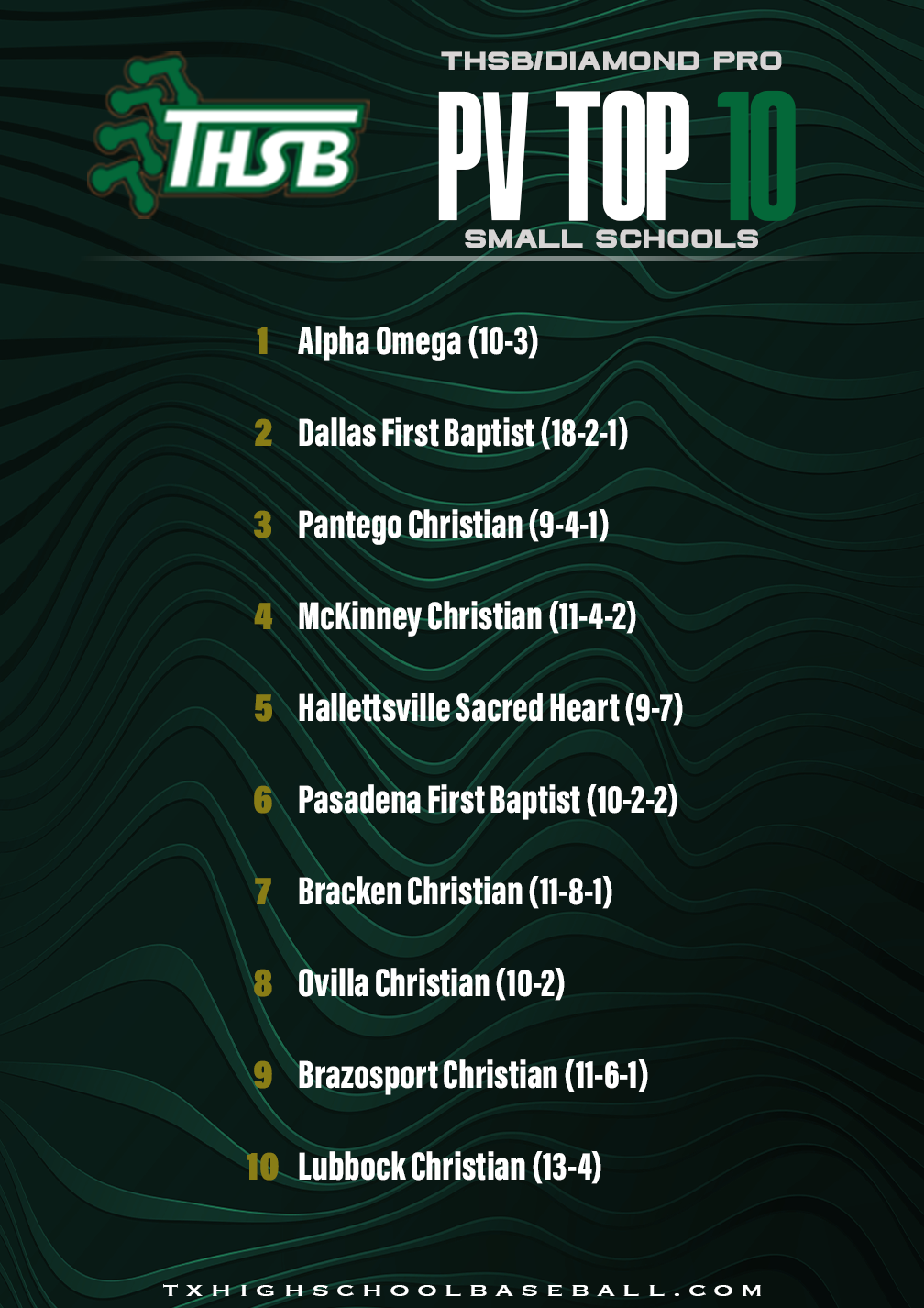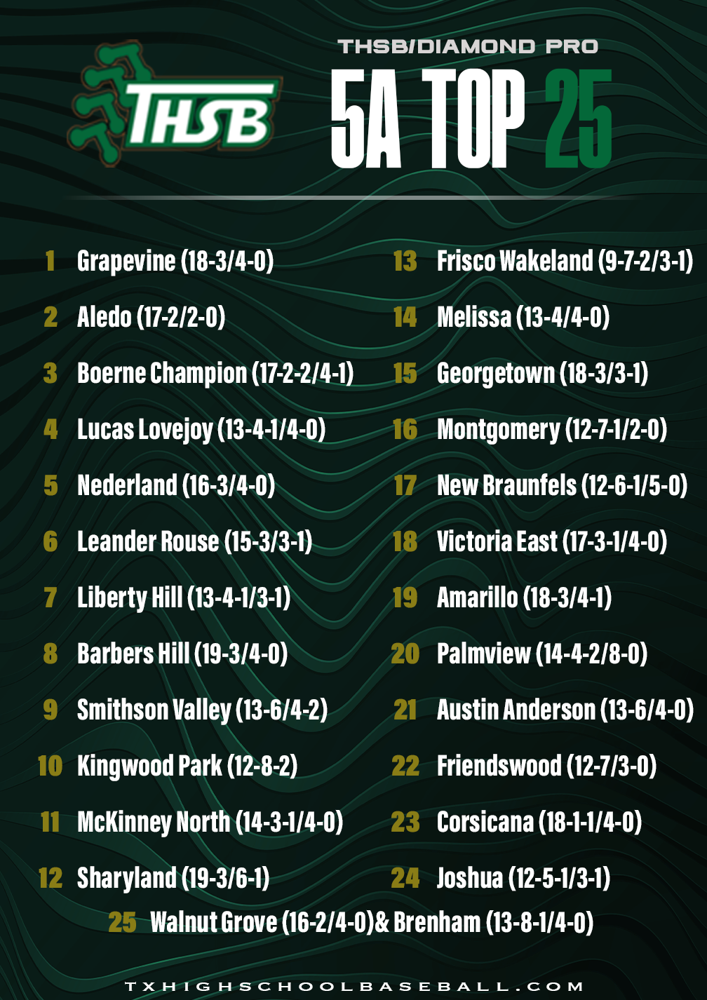 Diamond Pro/THSB Top 25 Rankings – 3/23