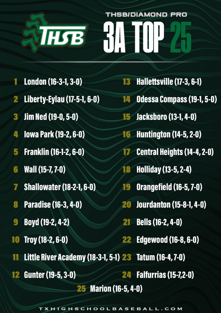 Diamond Pro/THSB Top 25 Rankings – 3/30