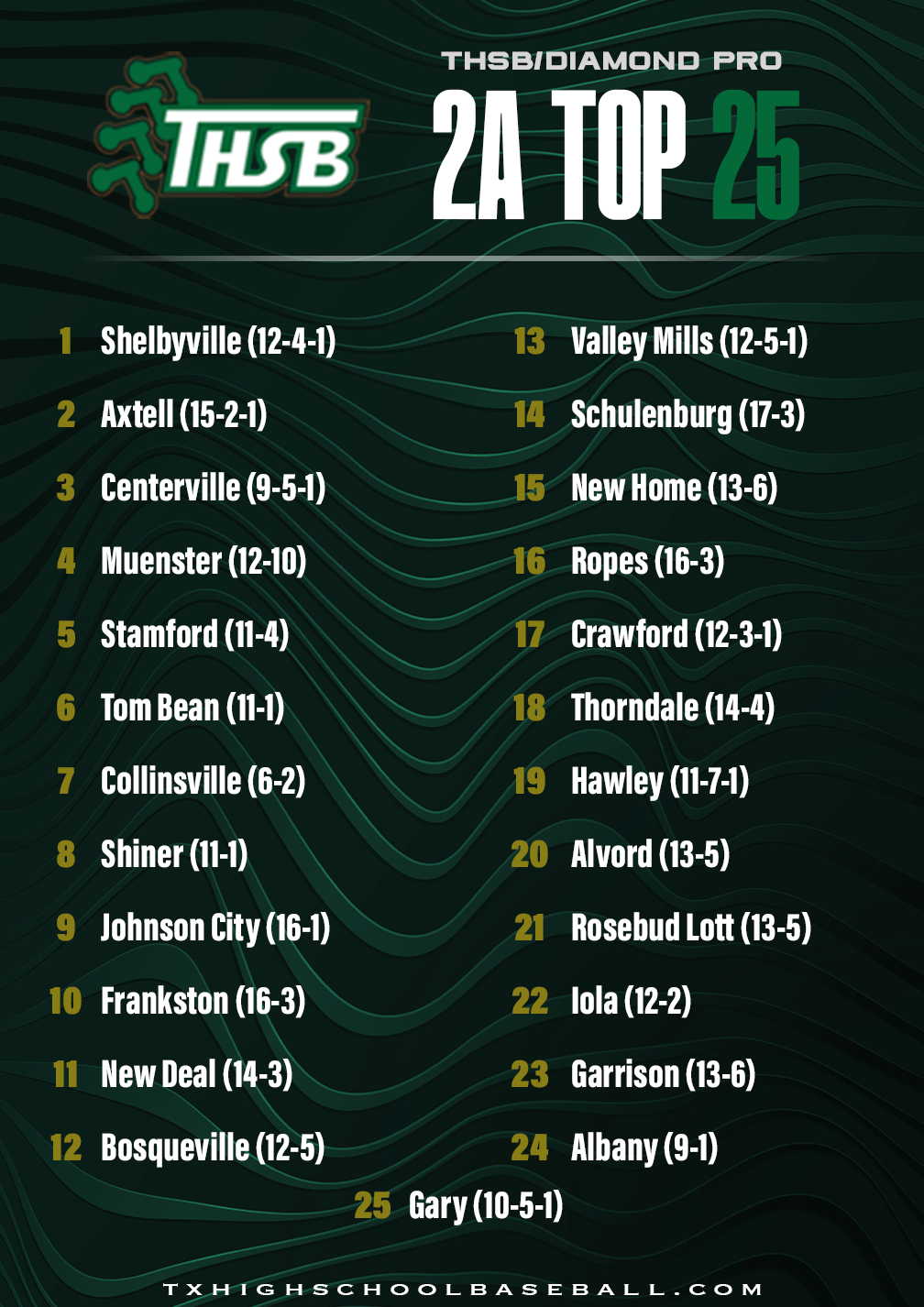 Diamond Pro/THSB Top 25 Rankings – 3/30