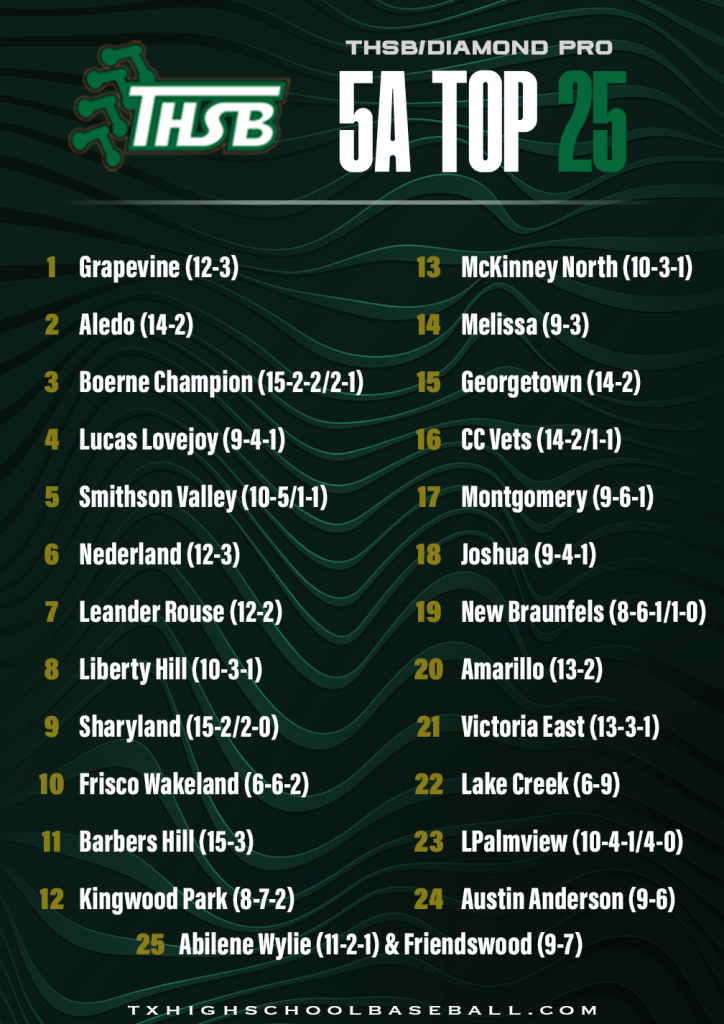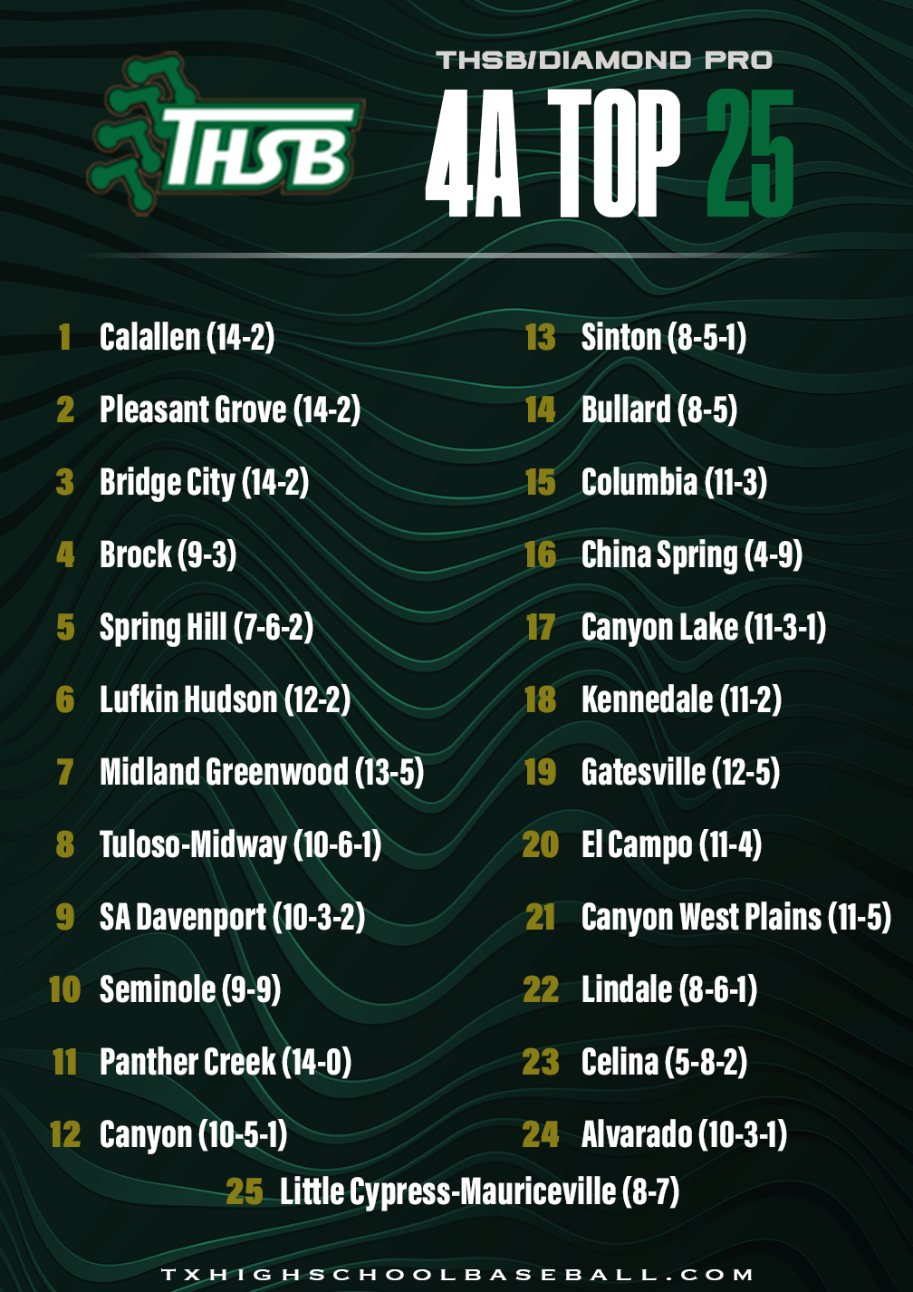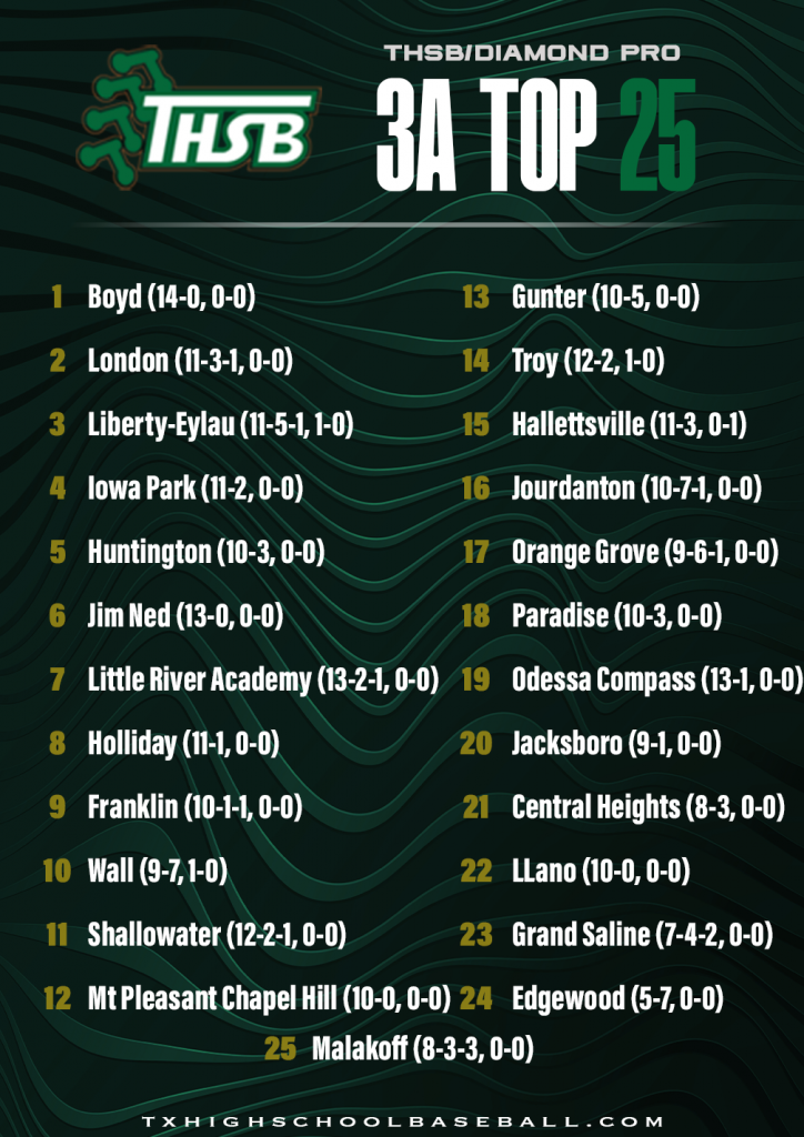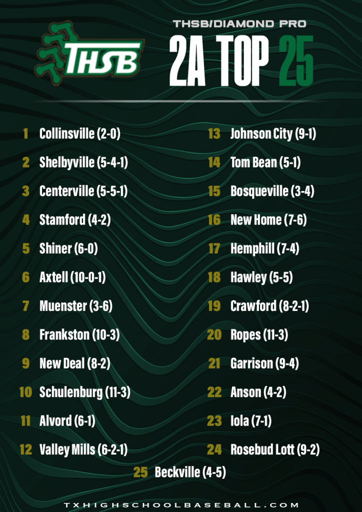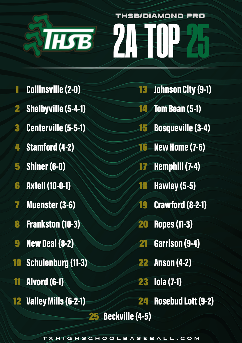Diamond Pro/THSB Top 25 Rankings – 3/9