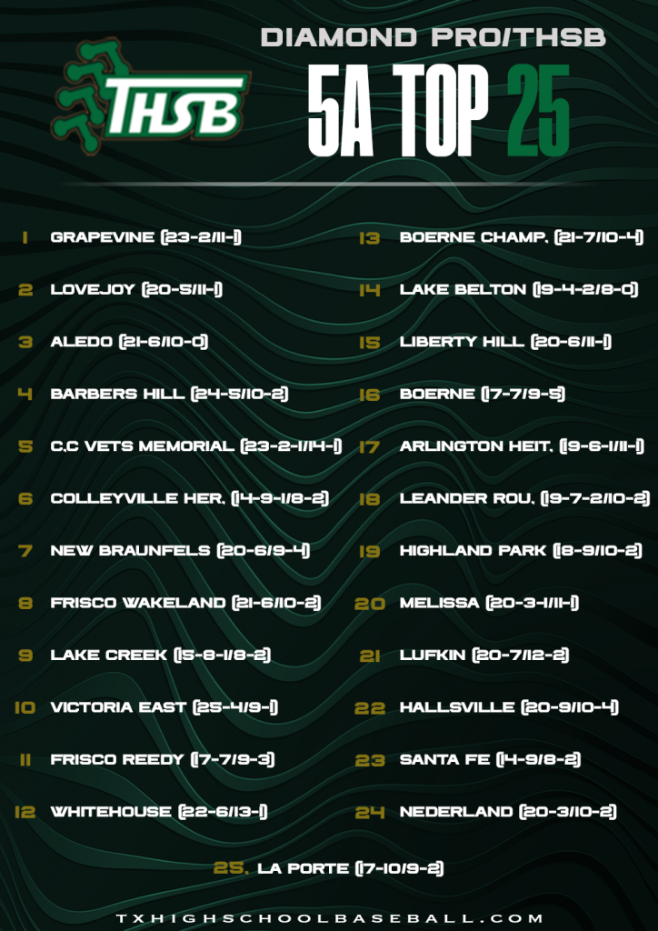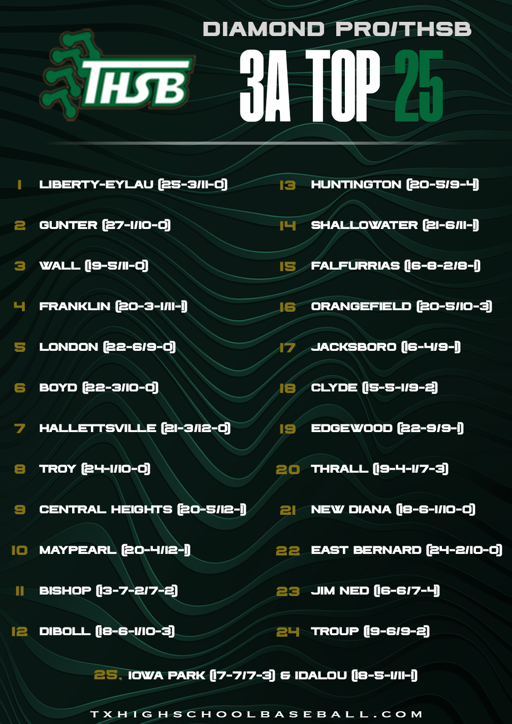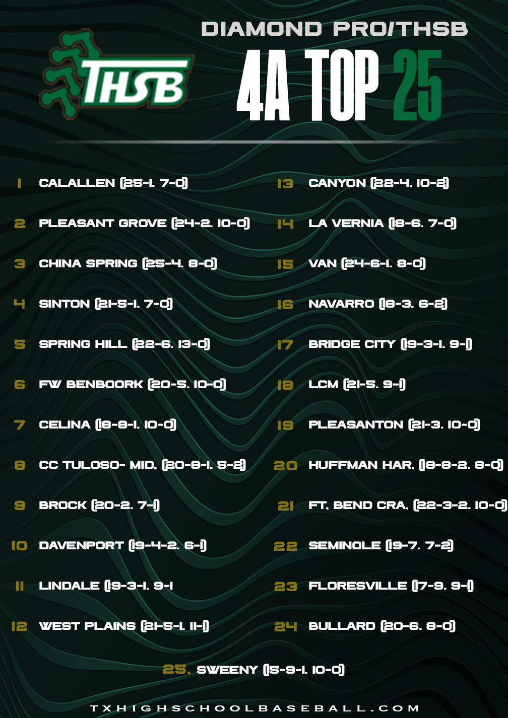 Diamond Pro/THSB Top 25 Rankings – 4/21