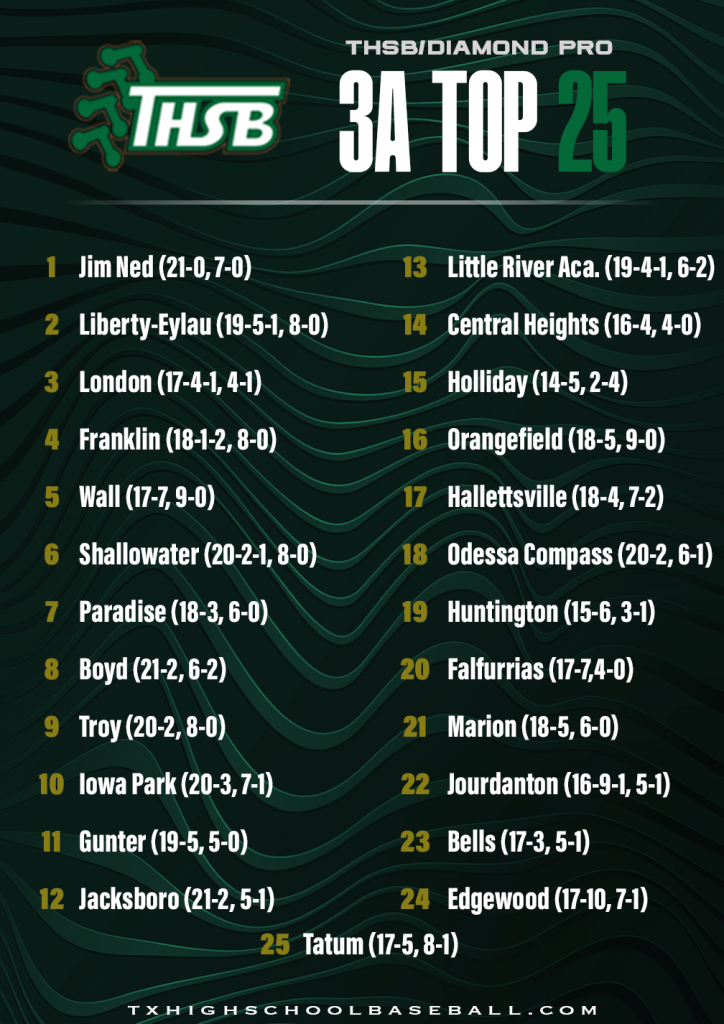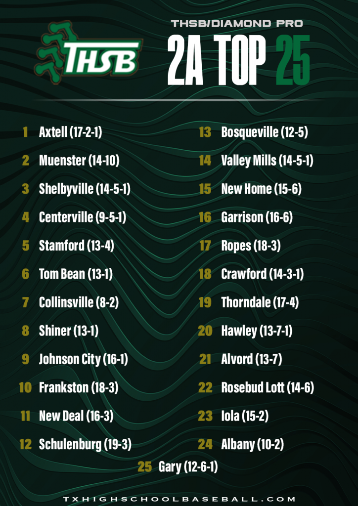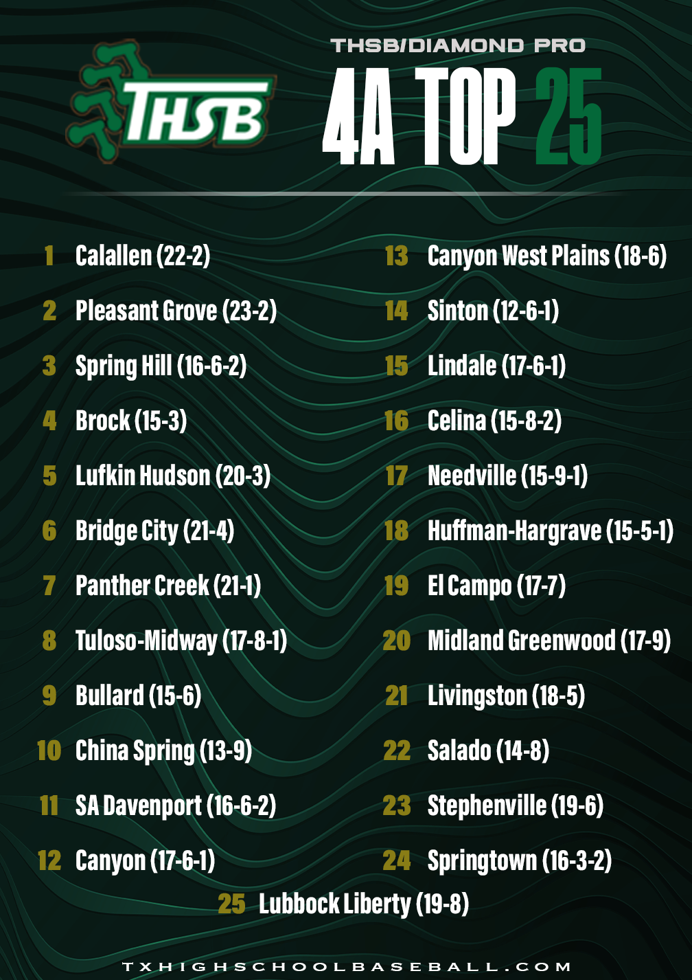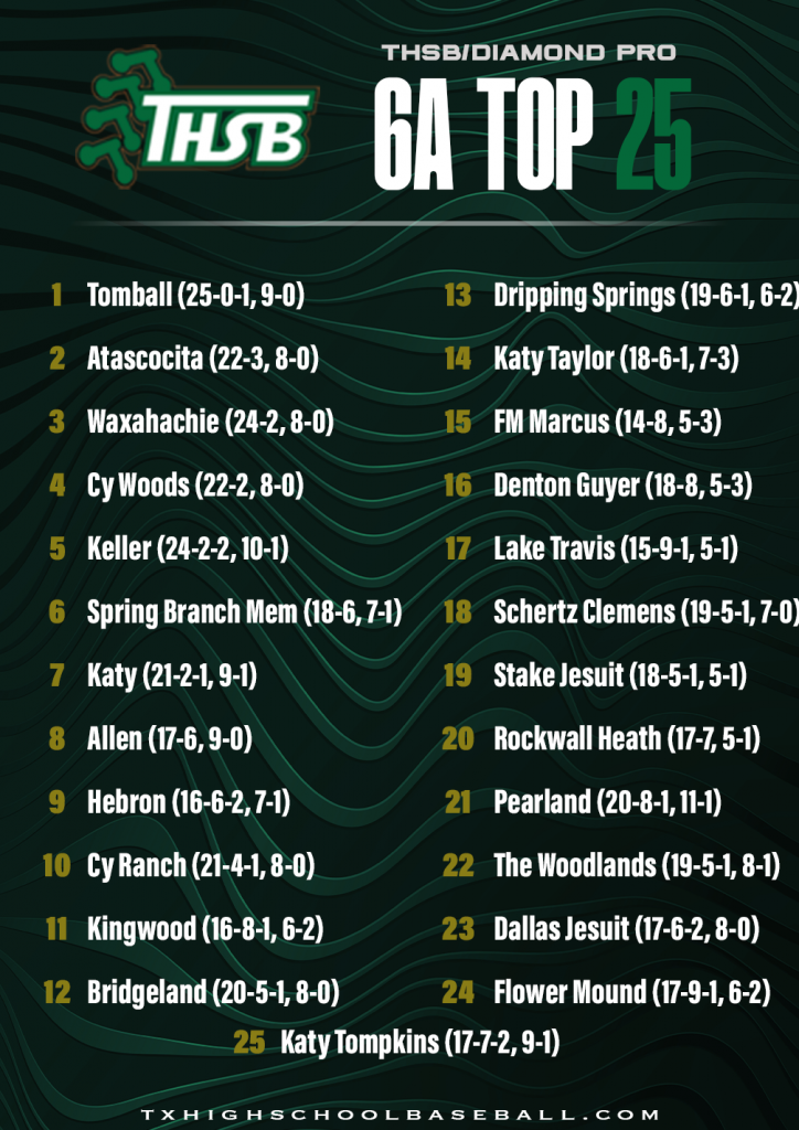 Diamond Pro/THSB Top 25 Rankings – 4/6