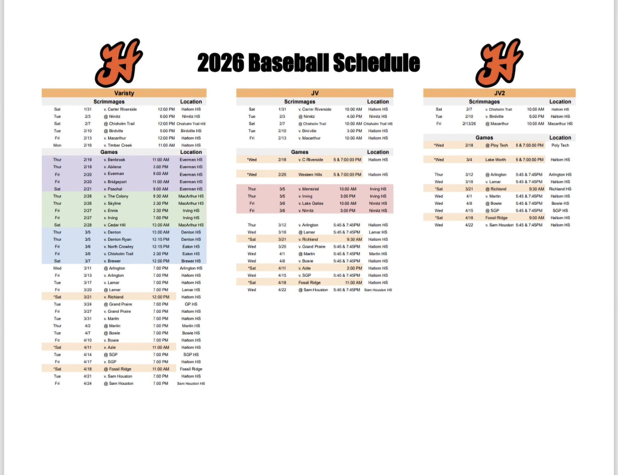 Team Website: Haltom Buffalos Baseball Facebook / Haltom High School Baseball X