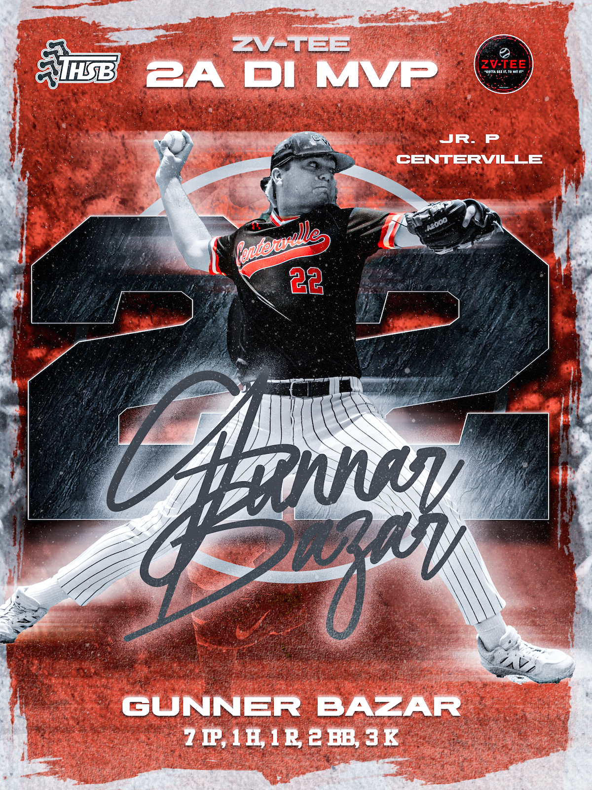 Centerville added an insurance run on a Jake Pineda single to right scoring Cooper Wilson. Centerville’s Gunnar Bazar toed the rubber in the 7th. After walking the leadoff batter, Bazar continued his dominant performance and retired the next 3 batters in order. Centerville won its first 2A State Division I baseball championship.