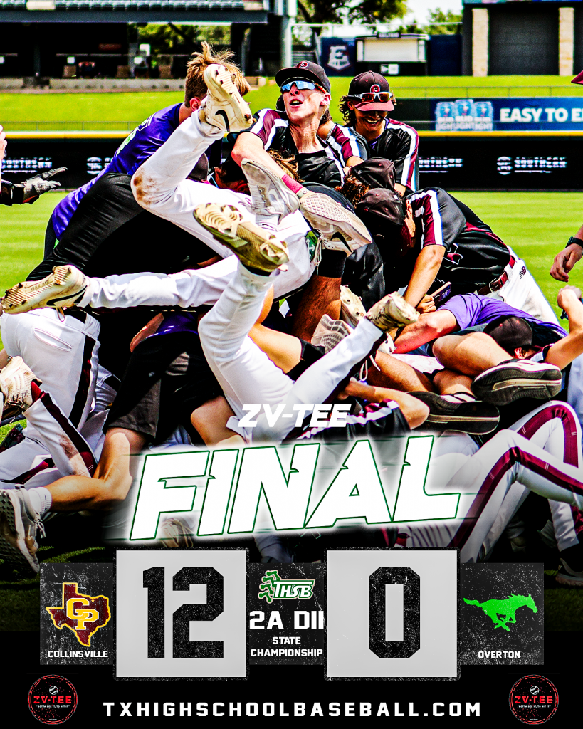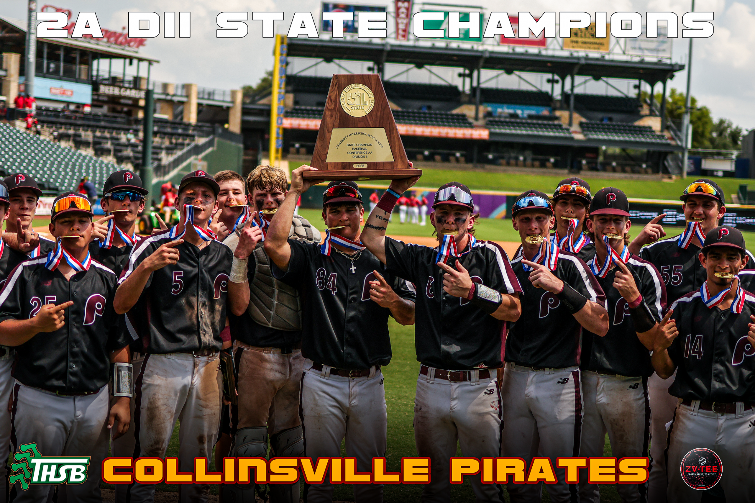 Thanks to a runner’s interference call, Hill continued to just face 3 batters in an inning as would Casen Schafer for the Pirates in the bottom of the 6th. Collinsville bats came out hot in the top of the 7th. Coupled with 3 walks and a hit by pitch, the Pirates quickly added four insurance runs before the first out was recorded. They would add four more before the top of the 7th was over. Overton could not mount a comeback. Collinsville won the first Division II 2A State Baseball Championship.