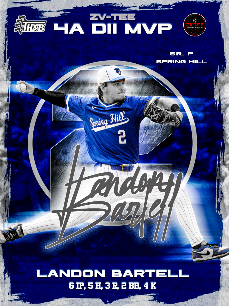 Spring Hill picked up another in the 5th on a Grant Burton RBI single to make it a 5-1 game. And Landon Bartell had settled in on the mound for Spring Hill. After giving a run in the first inning, he gave up just 1 hit and no runs through the next 5 innings. Bartell got in trouble to start the 7th giving up a single and a hit batter. Cayden Rhodes came in to finish the game.