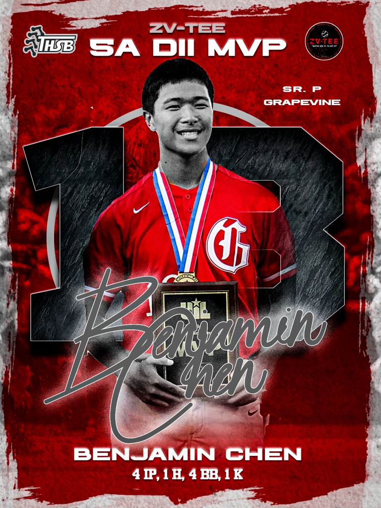 Chen officially pitched 4 innings giving up 0 runs on just 1 hit with 1 strikeout. He was named the championship game MVP. “At the end of the season, we thought we had all the pieces to do this again,” Chen commented. “But it’s all about teamwork. This was only my second relief of the season and it was super hot out there so I just had to bear down and adjust. This team will go down in history as the last 5A single champion and the first 5A Division 2 champion.”