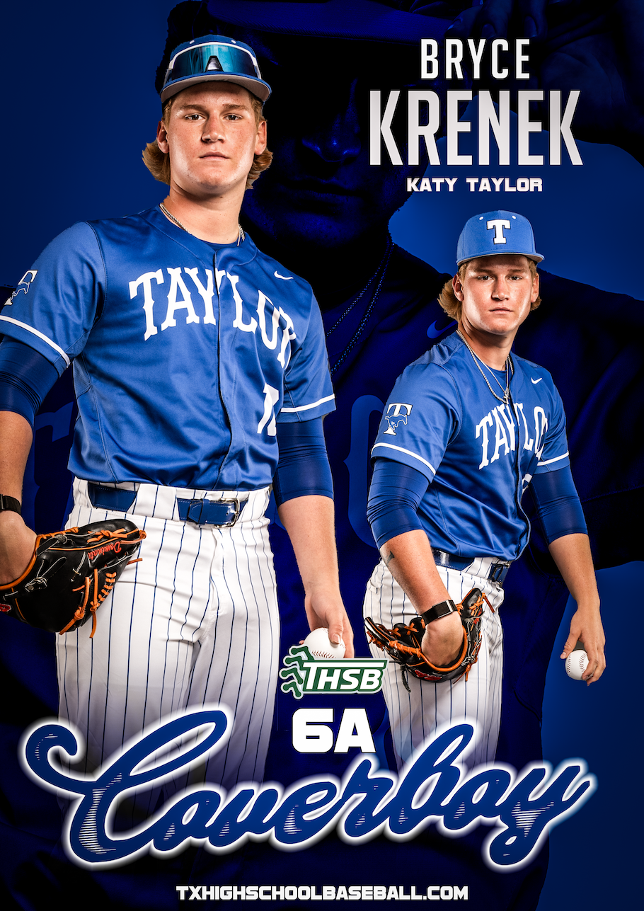 Bryce Krenek is a 6’3” 225 Sr LHP for the 19-6A Katy Taylor Mustangs. He has signed with the University of Texas.