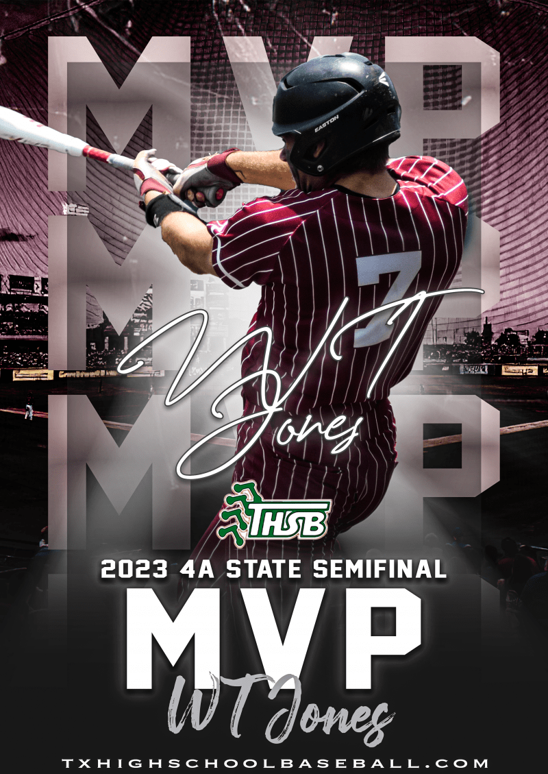 WT Jones was the starting pitcher going 3.2 innings giving up 3 runs, 1 unearned, on 7 hits and 3 strikeouts. At the plate, he was 2-3 with a triple, 2 RBIs, 3 runs and 2 HBP. He was named the THSB 4A Semifinal MVP.