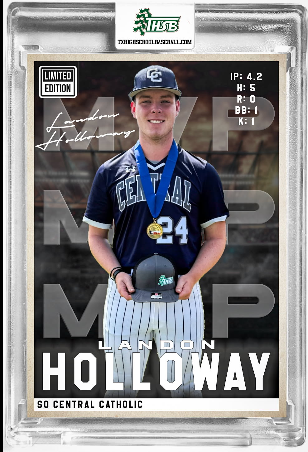 Landon Holloway was named the THSB Championship Game MVP for his impressive performance on the mound.