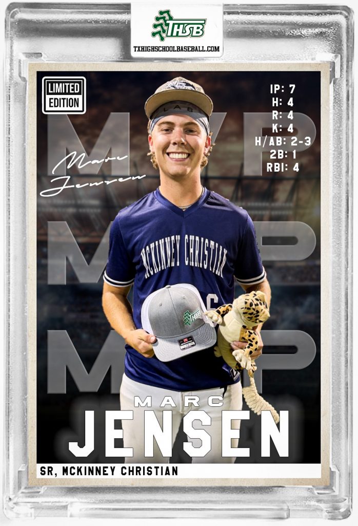 Jensen was named the THSB MVP of the game. He was the winning pitcher going 7 innings, giving up 4 unearned runs on 6 hits, 4 strikeouts and no walks. He also was 2-3 at the plate, with a double and 4 RBIs.
