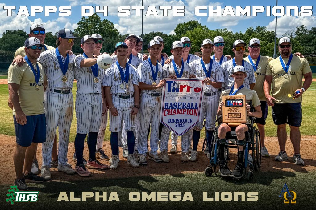 Zane Underwood pitched a no-hitter and Alpha Omega scored 13 runs on 8 hits in a 13-0 run-rule victory over Denton Calgary. They are the 2025 TAPPS Division 4 State Champions.