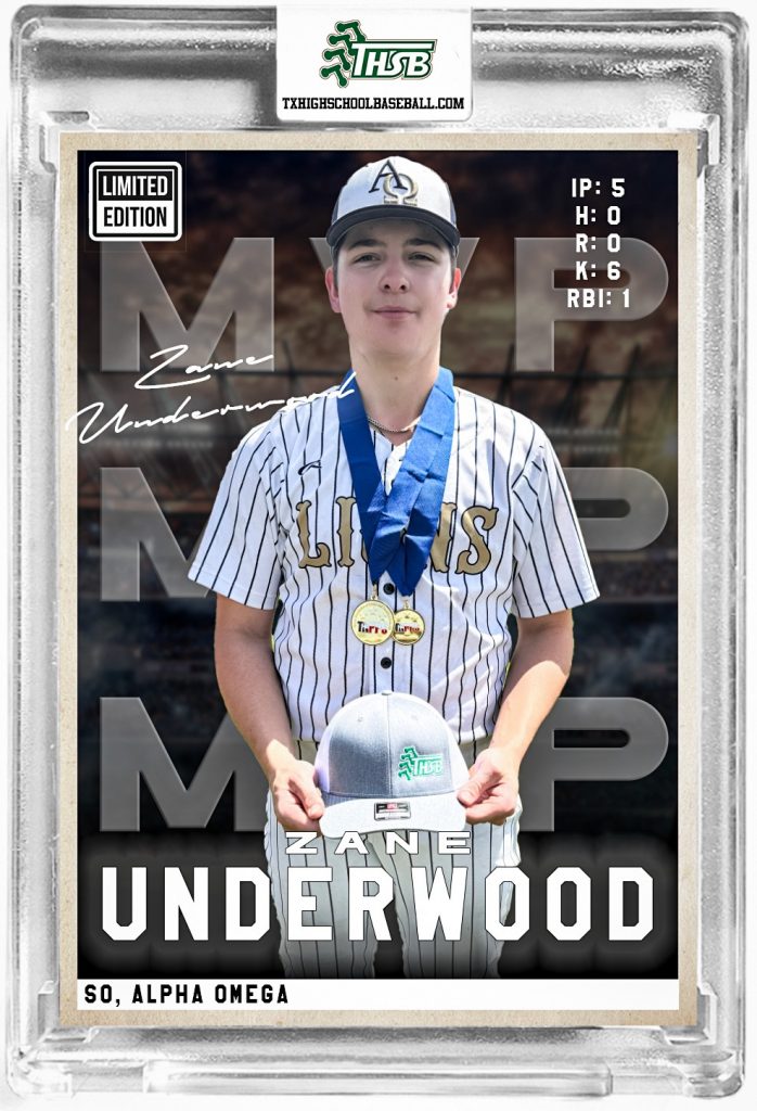For his pitching performance, Zane Underwood was named the THSB MVP of the TAPPS Division 4 State Championship Game.